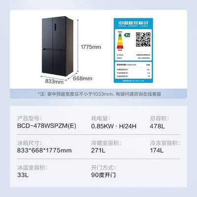 美的 净味 对开门冰箱