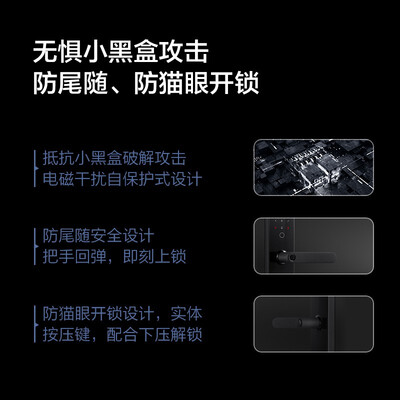 这款时尚碳素黑色指纹锁,经典大气,且色泽牢固,久用不易褪色。自带门铃,高分贝大音量,不易错过来访客户。