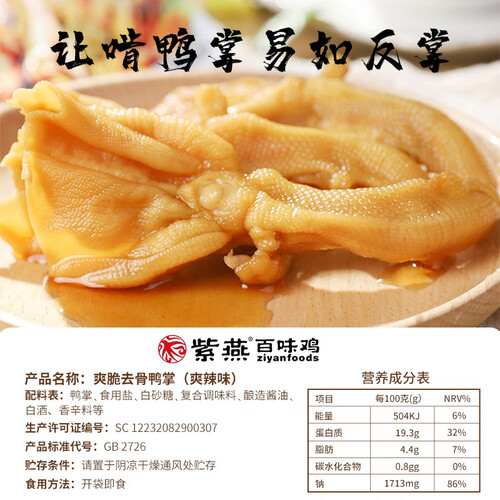 精选大号鸭掌,经人工拆骨,保留筋肉,经卤味配方精心泡制,每一寸皮肉都酸辣入味,好吃不用吐骨,清新甘冽,爽脆酸辣。