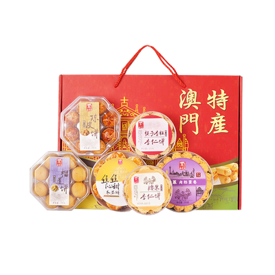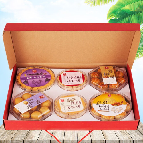 内含六种口味糕点,包括榴莲、陈皮等,品种丰富,满足不同口味。采用喜庆的大红色包装,适合用来赠同事朋友亲人,寓意吉祥。