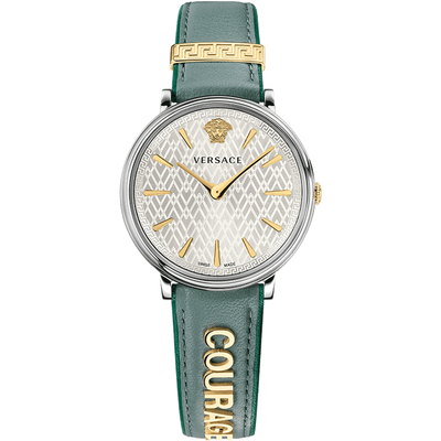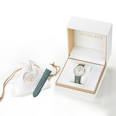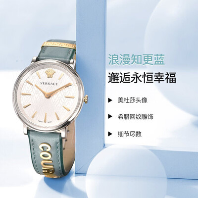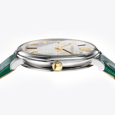 表带选用小牛皮打造而成,舒适透气,夏天佩戴也不容易闷汗。V形的雕刻纹路,搭配外圈的希腊回纹,整体复古华贵。