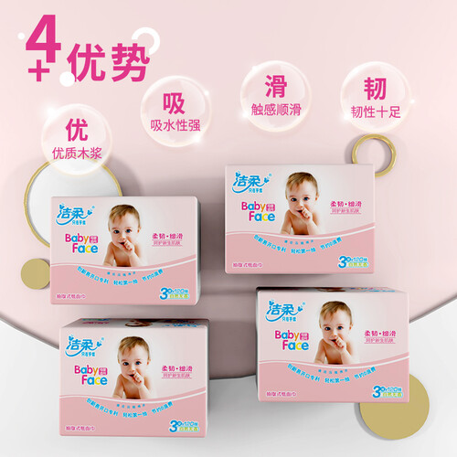 严选原生纤维木浆纸,柔韧性更强,纸张更加细腻,不易掉纸屑。无任何荧光增白剂添加,自然无香,安全无刺激,适合母婴使用。