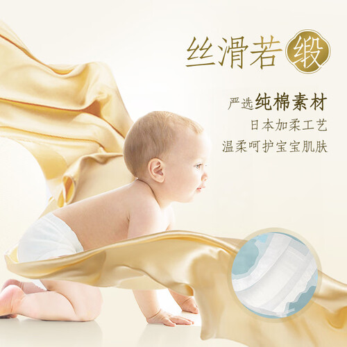 严选含棉素材,经加柔工艺处理,轻柔触感,温柔呵护宝宝肌肤。纸尿裤穿戴舒适,透气干爽,久穿不闷汗。