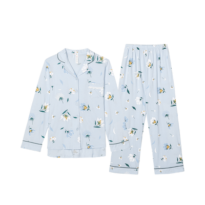 家居服的衣面满印花朵印花,清新靓丽,穿着仙气十足。搭载卡通印花的设计,精致美观,彰显满满少女心。
