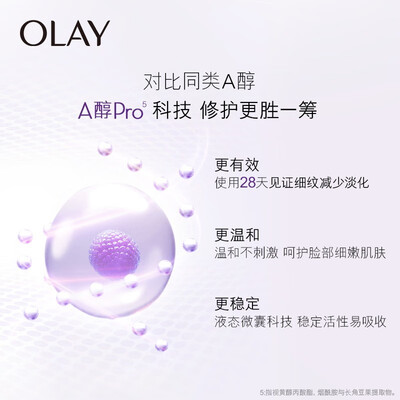 眼纹是初老的第一条警戒线,OLAY超A眼霜,皮肤学专研细纹方案,0添加/矿物油、香精、酒精,减少可见纹,淡化顽固纹,预防潜伏纹。