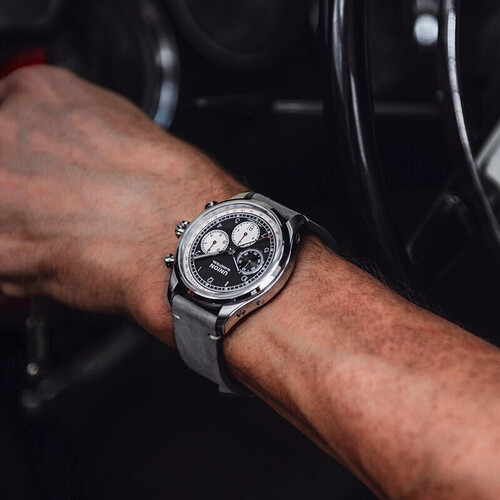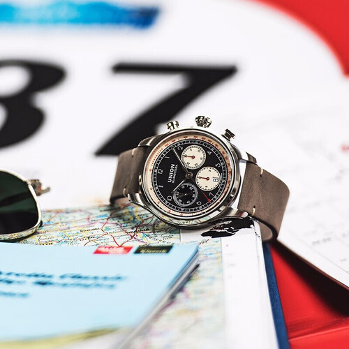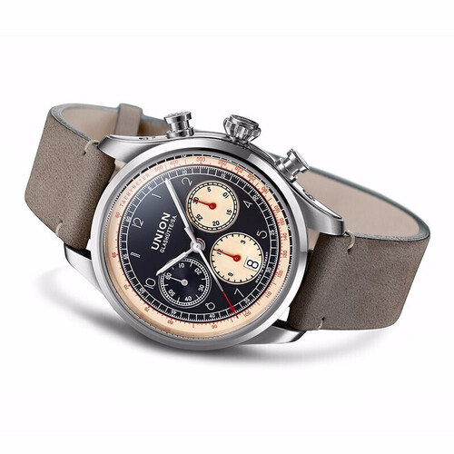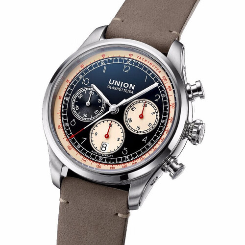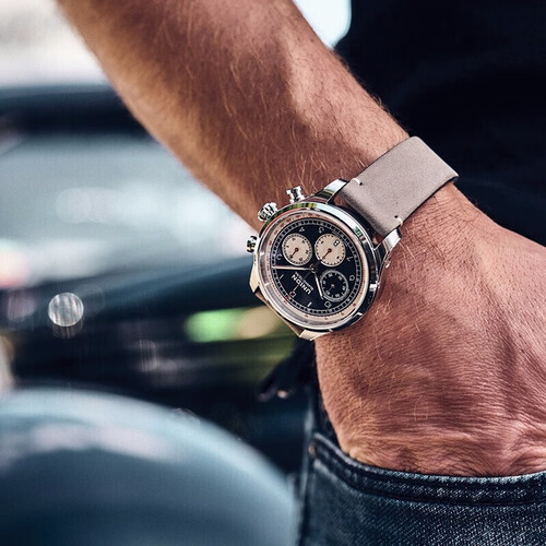 棕色的小牛皮表带具有良好的透气性能,持久佩戴不易闷汗,舒适体验。双按钮式双折叠扣,操作简易使用方便。