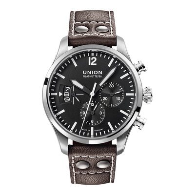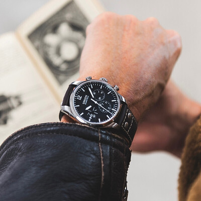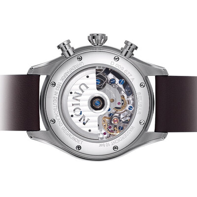 纯黑色的表盘,与银白色的指针和数字形成鲜明对比,展现沉稳儒雅的风格。镂空背透表底,将机芯的运作过程一览无余。