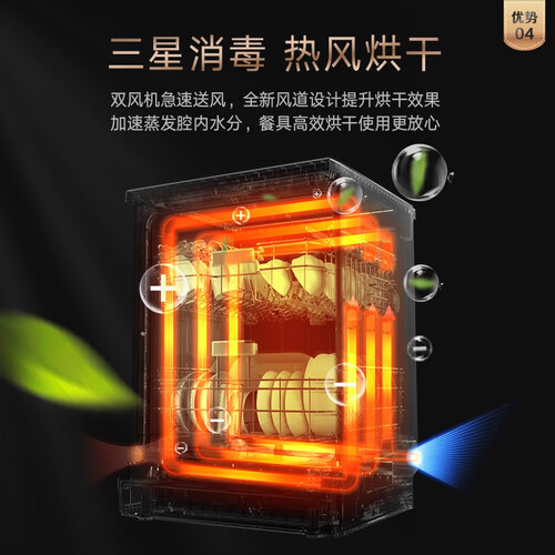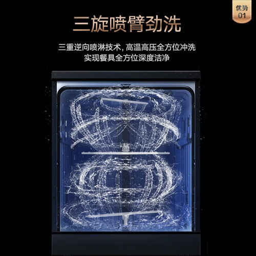 拥有龙卷式三层喷臂,澎湃水流喷涌而来,碗筷随意放置也能轻松清洗。附带高温除菌功能,清洁更彻底,日常使用更加安心便捷。
