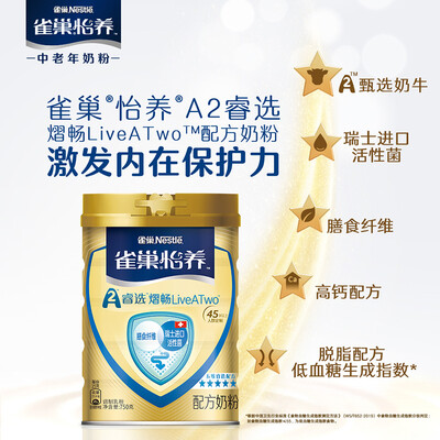 甄选优质A2奶源,营养亲和更易吸收,低GI高钙的配方,促进骨骼强健,呵护圣体健康;内含多种维生素成分,均衡身体营养。