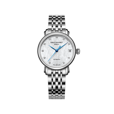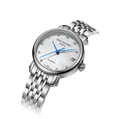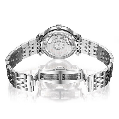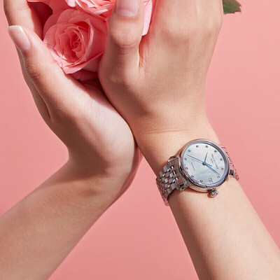 采用珍珠贝母表盘,尽显幻彩层次感,浪漫高雅,更显女性柔美气质。贝母镶钻表盘,简约中凸显光彩,尽显优雅气质。