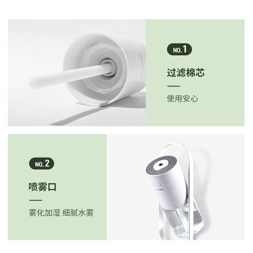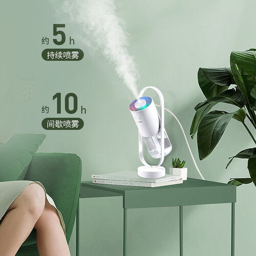 内置雾化片,可以将干净的水进行过滤与雾化,而后再扩散到空气当中,从而提升空气湿度;还设有七彩氛围灯,让夜间更梦幻。