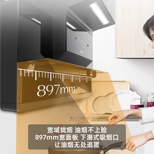 创新油烟上排式设计,动力强劲,烹饪时油烟不上脸。内置原厂自主研发电机,每分钟风量可达21m³,油烟吸收更彻底。