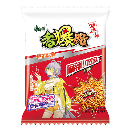 一款入口即可感受香爆脆口感的干脆面,很具特色的麻辣小龙虾,咬上一口脆得嘎吱响,比嗑瓜子有趣多啦。独立包装食用起来更方便。