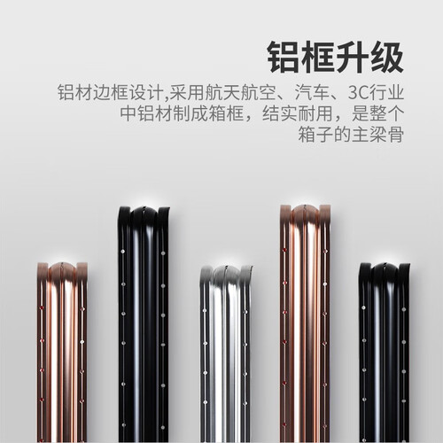 采用铝材边框的设计,保持牢固可靠,提高整体的抗压力。加厚防撞防摔包角,避免箱体受到磨损,守护旅途安全。