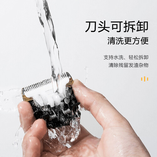 符合人体工学的机身,抓握更舒适,家中理发也可以很轻松。轻便一步拆卸,刀头可随意在清水下冲洗,更加方便省心。
