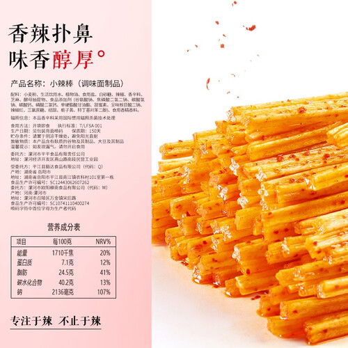 采用严苛生产工序,让你每一口都吃得安心。鲜辣爽口的辣棒,色泽红亮,入口Q弹有嚼感,让你吃一口就会爱上。