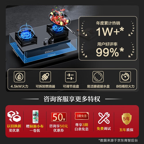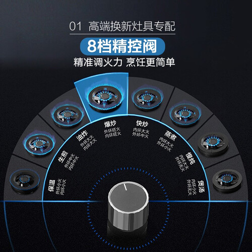 拥有4.5KW大火力,满足中式菜肴爆炒的需要。底盘自适应设计,锅具更加稳定牢固。8挡精控,每种食材皆可找到适宜的温度。