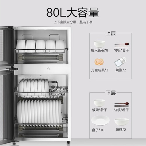 整机采用智慧分控设计,可以为多种餐具提供去菌作业,是母婴家庭的常备好物。利用镜面反射工艺,防止出现盲区遗漏。