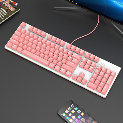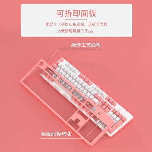 键盘配有可拆卸面板,方便日常清洁,保持按键精准度。结合104键全尺寸设计,按键布局科学合理,带来舒适的使用体验。