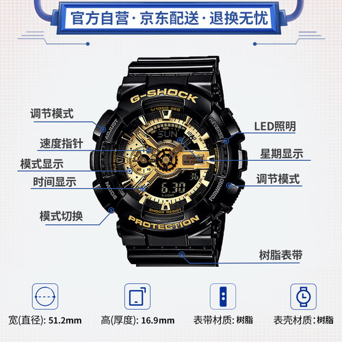200米防水设计,户外潜泳也能轻松驾驭。先进的防震技术,可全方位保护手表,无惧摔落。树脂表带,贴合透气,佩戴舒适。