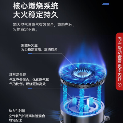 采用核心燃烧系统设计,火力持久稳定,可尽享烹饪带来的快乐。拥有一级效能,使用更节能省气,有效减少家庭开销。