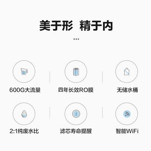 采用600G大通量设计,带来澎湃大水量,满足全家饮用需求。正面抽拉式换芯,简洁又方便。一键WiFi远程监控,省心放心。