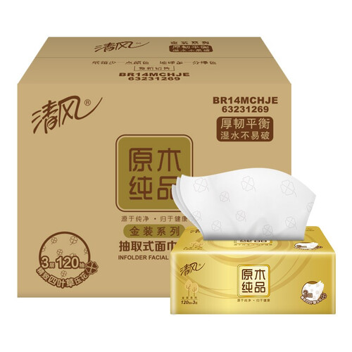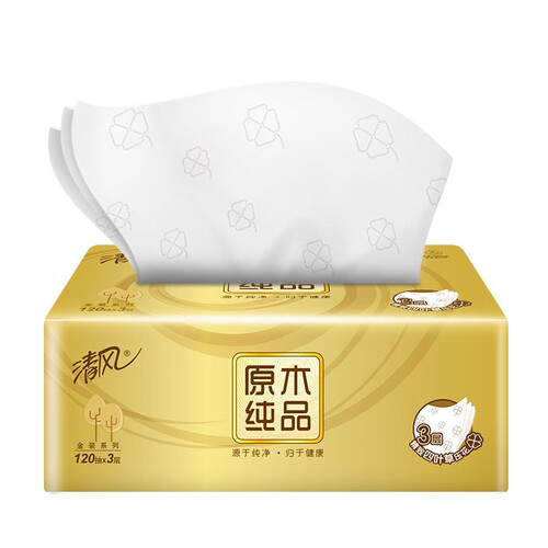 采用四叶草压花工艺,使得纸张紧密贴合,擦拭不易分层。三层的厚实体验,柔度和韧性比例平衡,擦拭过程中不易破损。