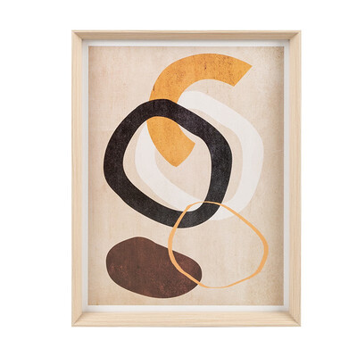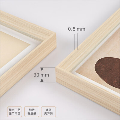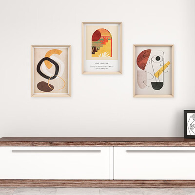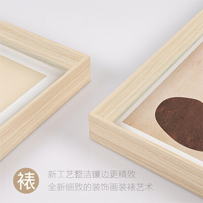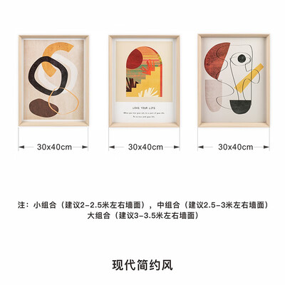 从左往右依次代表简白、古筑和心绪,其现代抽象的作画风格,感受艺术氛围;边框采用环保木材,纹路清晰,彰显质感。