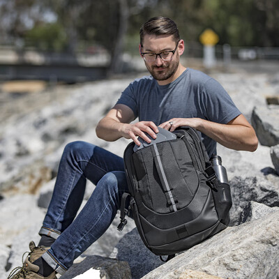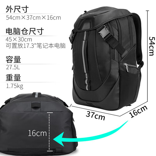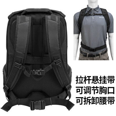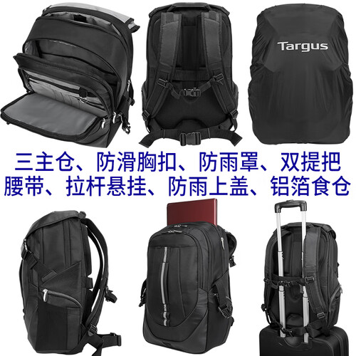 背负增设拉杆箱固定带,出行时可将背包固定在行李箱上,省心出行,解放双手。配置防雨罩,下雨时套上防雨罩,全面保护包内物品。