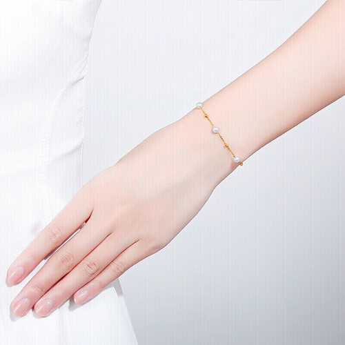 经过层层筛选,选择了18K金材质,色泽较为亮丽通透,融入了饱满的珍珠元素,显得更加优雅,且又牢固不易掉。