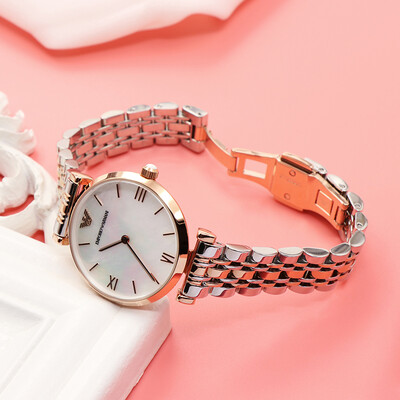 银色拼玫瑰金色的不锈钢表带,散发几分华丽气息,腕间魅力只增不减。表盘内镌刻鹰形logo,精美别致不失品牌辨识度。