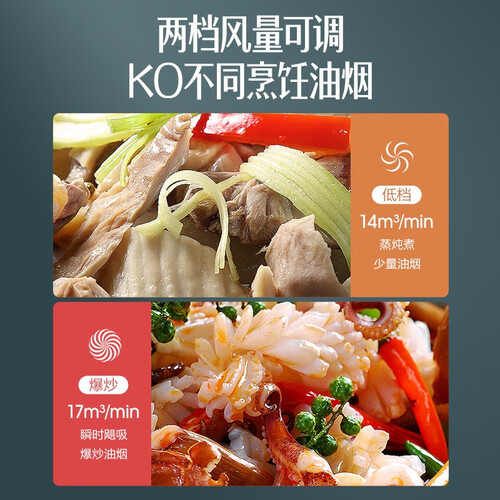 采用优质不锈钢制作机身,耐看抗腐蚀,一抹即可清洁。同时搭载17立方大吸力,快速吸走油烟,还你无烟的厨房环境。