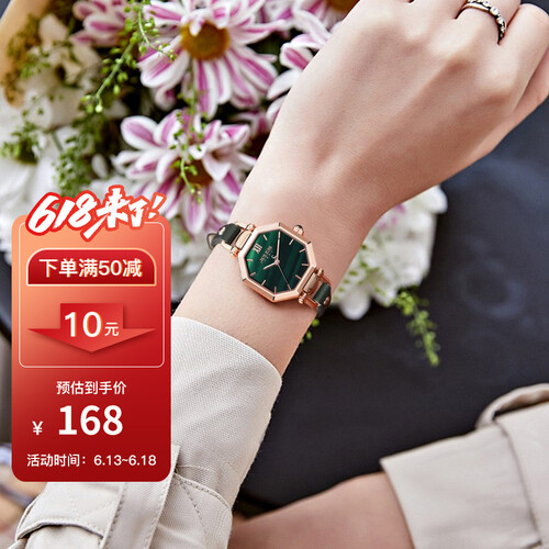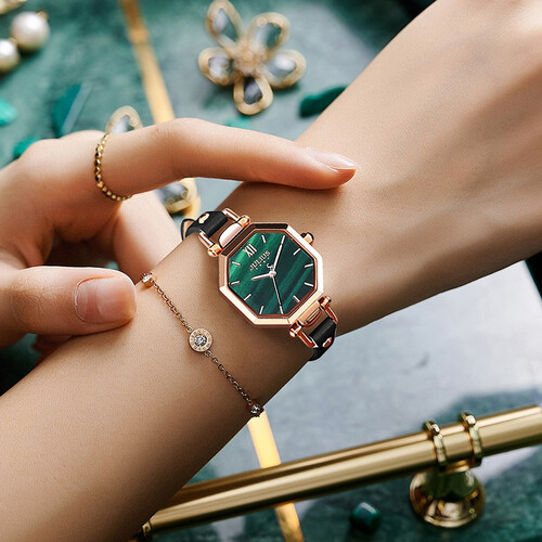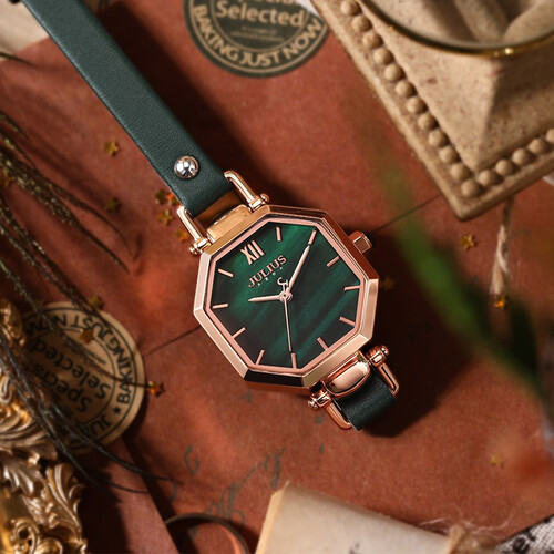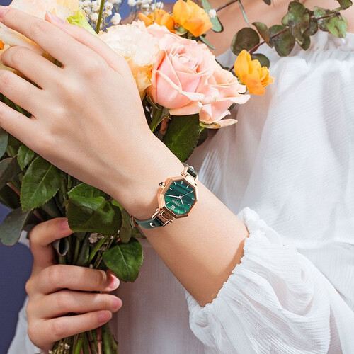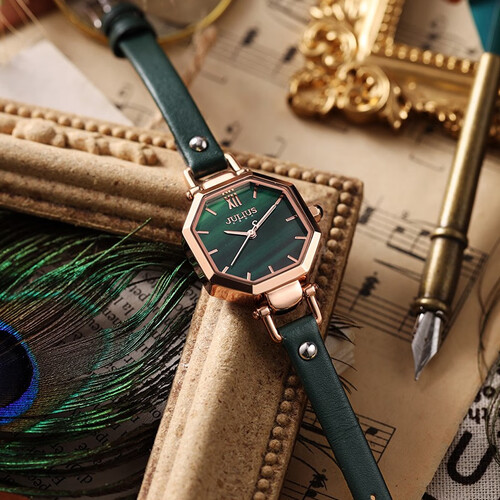 八边形表盘线条圆润,文艺复古,显得温柔浪漫。单面牛皮表带具有良好的透气性,久戴亲肤不闷热。进口机芯,走时稳定。