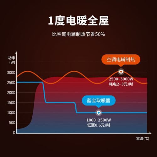 采用升级散热片数量远超旧款取暖器,相同条件下,能让全屋快速升温。三挡功率调节,实现低耗能恒温供暖,不用担心电费问题。