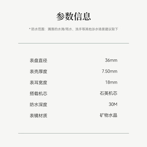 表镜选用矿物水晶制成,晶莹剔透,耐戴不易起泡。支持30米生活防水,无需频繁摘戴,实用性更强。