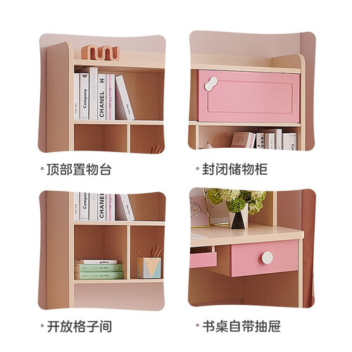 采用书桌书架一体化设计,学习收纳两不误,保持桌面整洁,提高学习效率。采用环保油漆喷涂技术,长久使用不变色。