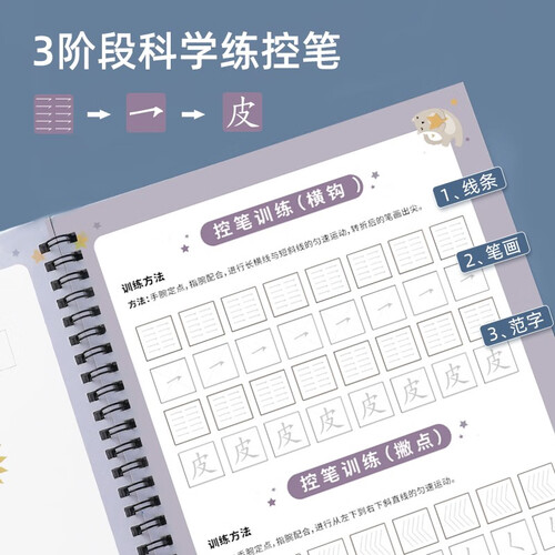 三阶段控笔训练,从线条、笔画、字体等逐步训练,保证孩子拥有一手漂亮字体。联想与练字巧妙结合,增加兴趣,学习更高效。