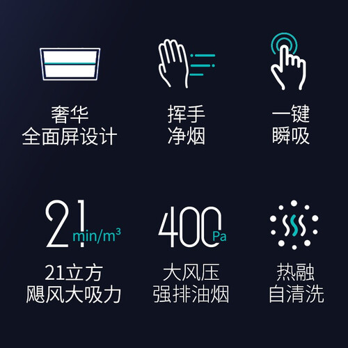 奢华雅致的全面屏设计,炫黑色的简约轮廓,为你的厨房增添格调。挥手即可操控的智能体感科技,零触碰,避免油污。