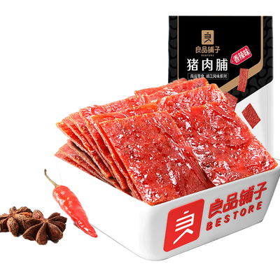 良品铺子猪肉脯选用精华后腿肉竹筛烘烤,轻薄鲜香,紧实筋道,肉质纹理清晰可见,让恰到好处的清香和嚼劲在口中蔓延。