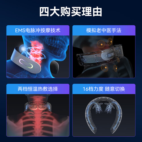 搭载了可调节的语音播报系统,减少盲按的操作。搭载了高强度的弹性臂,更好的贴合颈部的轮廓,按摩更舒服。