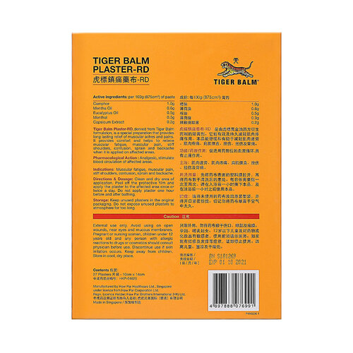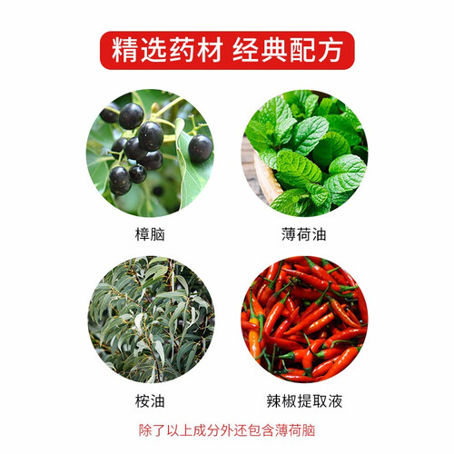 含樟脑、桉油、辣椒提取液等天然植物成分,贴敷温和舒适,适合肌肉疼痛、扭伤拉伤人群使用。撕开即可贴敷,操作方便简单。