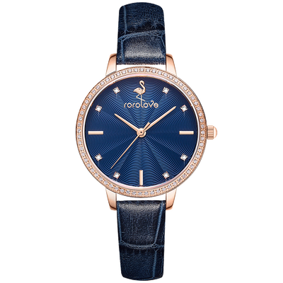 表盘设计有蔷薇花纹图案,立体轻盈,展现美感。锆钻刻度能够多角度折射光芒,璀璨闪耀。精钢表壳,防刮耐磨。