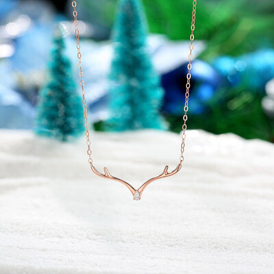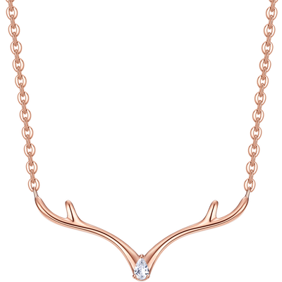 北欧风格的项链设计,闪耀的钻石配以鹿角设计,低调中的轻奢感,将北欧的“幸福”和中国的“福禄”相结合,包含美好寓意。