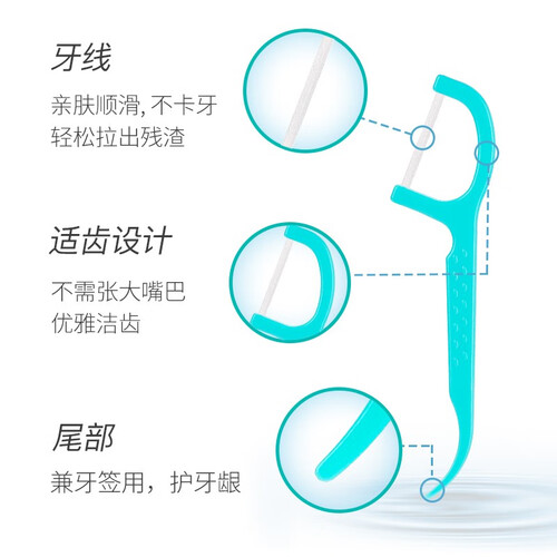 有着薄荷香味,牙线口感更清新,理牙线棒使用后轻松处臭味。横式把柄,剔后牙也变得十分轻松,扁扁的牙线清洁牙缝更彻底。