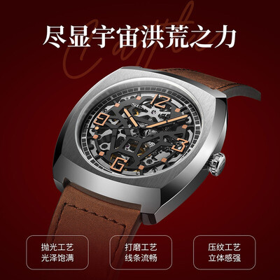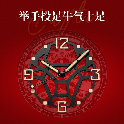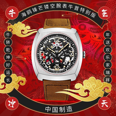 表盘刻画公牛图腾图案,预示吉祥与好运,为生活注入美好愿景。磨砂牛皮表带更是彰显质感,坚韧耐磨,久伴不变形。