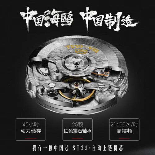 简约不简单的设计,特别之处在于表盘的设计与表带,给人一种很朴素又复古的感觉,同时具有25颗红色宝石的轴承设计,提升品质。