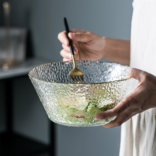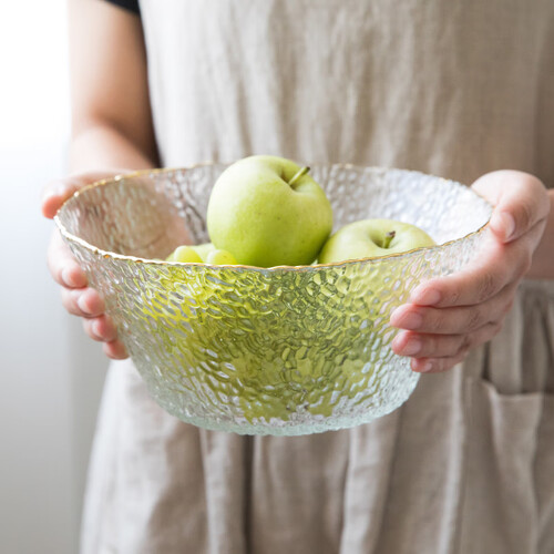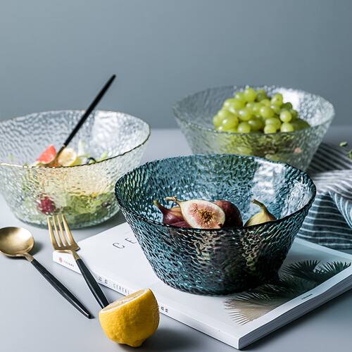 玻璃碗具外壁的锤纹设计,手感凹凸不仅能提升防滑性便于你拿放,而且富有质感更添时尚美感。