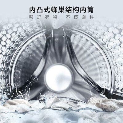 内凸式蜂巢结构内筒,温柔呵护衣物,不伤面料,简洁操作面板,功能一览无余,操作简单便捷。