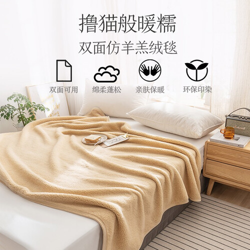 京东京造 加厚珊瑚绒羊羔绒毛毯