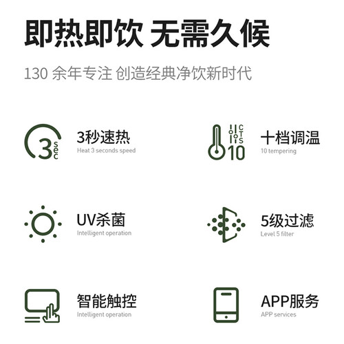 支持三秒速热,做到现烧现饮,纯净水无需久等。经过五级深层过滤处理,能够确保水质的纯净口感,甘甜爽口更省心。